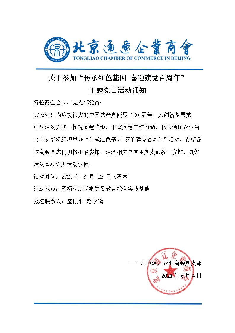 關于參加“傳承紅色基因 喜迎建黨百周年” 主題黨日活動通知